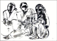 LAXMAN AELAY: Born in 1964 in an artisan's family in India. He acquired a Bachelor's Degree in Fine Arts, after graduating in Commerce. He has participated in numerous group shows in India and abroad. His major breakthrough was when he showed a large number of paintings and drawings in his first solo show in Hyderabad in 1999 at the ICCR Art Gallery. Some of the major group shows in which he has taken part are “TANA” Chicago, USA 1999; Contemporary Deccan - A New Generation of Artists at the Center for Cellular & Molecular Biology, Hyderabad1999. He also took part in the Seventh Annual Group show at Surya Art Gallery, Hyderabad, 2000; Two Man Show at Jehangir Art Gallery, Mumbai, 2001; Tradition to Modernity Fulda, Germany, 2001; Regional Art Exhibition at Cochin (Lalit Kala Academy) 2001; National Art Exhibition at Ahmedabad (Lalit Kala Academy) 2001 |