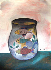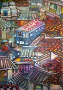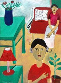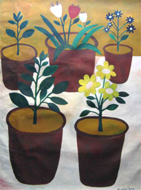 NANDINI GOUD: Daughter of senior and renowned artist, Laxma Goud, obtained her Bachelor's degree in painting as well as her Master's degree in printmaking, from the Faculty of Fine Arts at the MS University in Baroda. Her paintings & graphics reflect her preoccupation with Hyderabad, the place she unequivocally calls home. Her work tries to capture the day-to-day profile of a typical street in Hyderabad. Her works have been sold in auctions held by the world famous auction house, Christie's, and find place in the Herwitz Collection, which is amongst the best of Indian contemporary art in the world today. |
