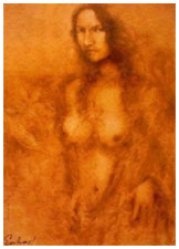 SUHAS ROY: He studied at the Indian College of Arts and Draftsmanship,Calcutta, and under the tutelage of Prof. S.W. Hayter at the Atelier 17 Ecole Superior Des Beaux Arts, Paris. His works have been exhibited allover the world through exhibitions like the Asian Graphic Prints Traveling Exhibition, USA, the Tokyo Print Biennale, Japan, Contemporary Indian Art,Yugoslavia, Romania, Czechoslovakia, Hungry, and Wounds, at the Central Institute Modern Art, New Delhi, and the National Gallery of Modern Art, New Delhi. Roy lives and works in Santiniketan where he is the head of the Department of Painting at Kala Bhavan, Santiniketan. His craftsmanship and consummate skill that ensure that his richly romantic subjects do not touch extreme syrupy and stereotypical portrayals. Instead, their very patent beauty veers towards melancholic grace and elegance. This graceful portrayal of his subjects has much to do with his choice of refinement. The mystical flavour of his works arose from his materials - his crayons, charcoal and brush have sensitivity and interpretations of the 'unknown'. |